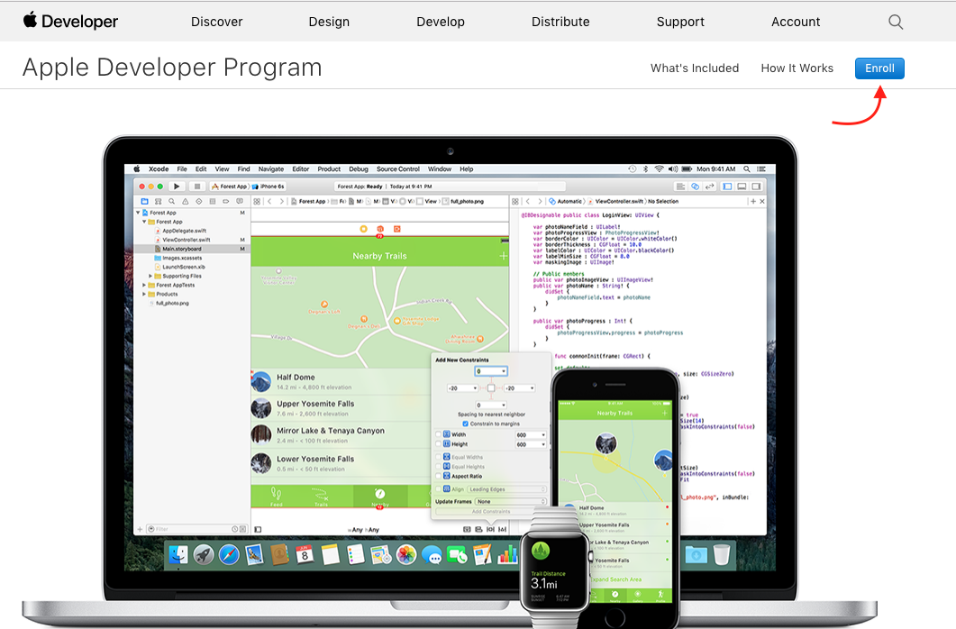 Indem Sie oben rechts auf Enroll klicken, starten Sie das Enrollment Ihres Developer Accounts.